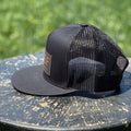 For the blue-collar grinders and go-getters. This black mesh-back hat comes with a rugged leather-style patch stamped with “ND6F”. A clean, classic look that pairs with steel-toe boots, dirt under your fingernails, and a six-figure work ethic.
