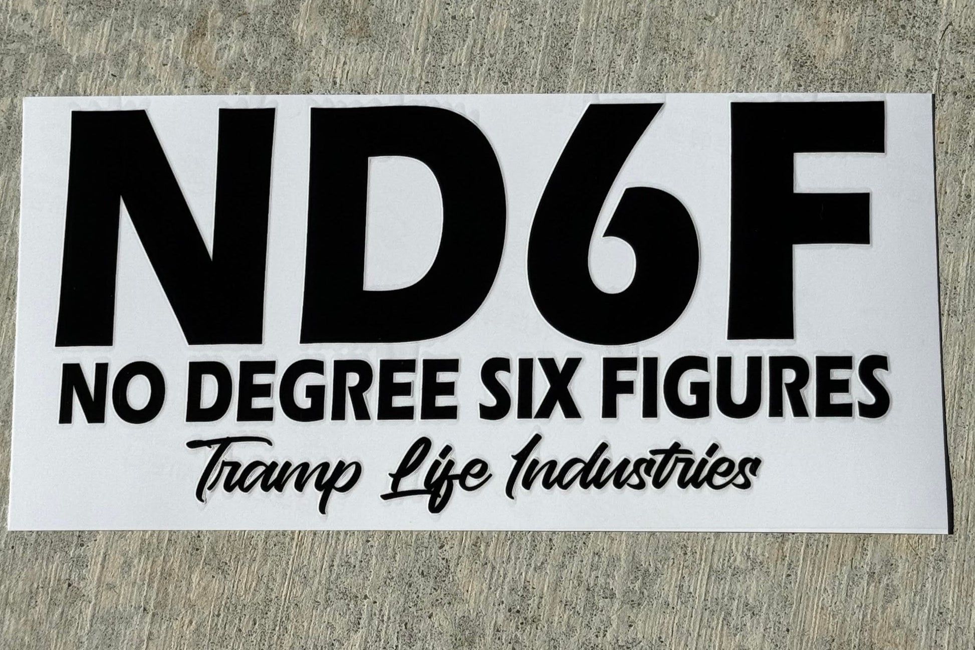 No Degree. Six Figures. Enough said. Whether you're repping the trades, oilfield, storm work, or any hustle that pays without a college degree, this sticker lets the world know what time it is.