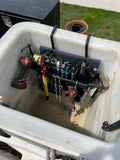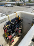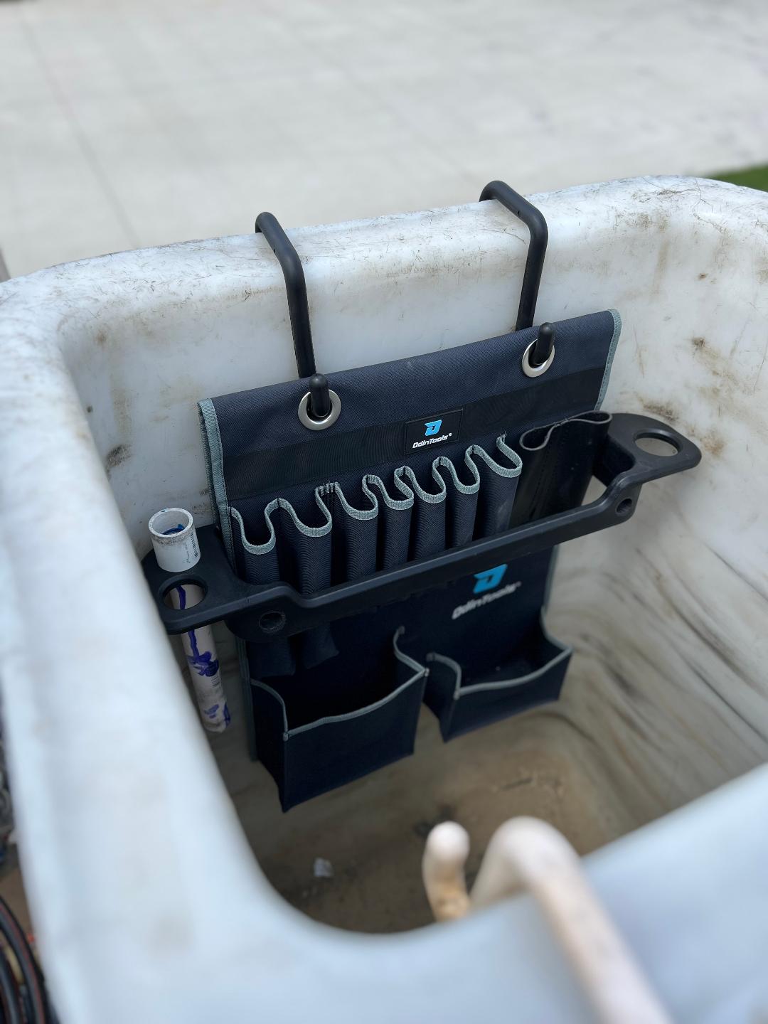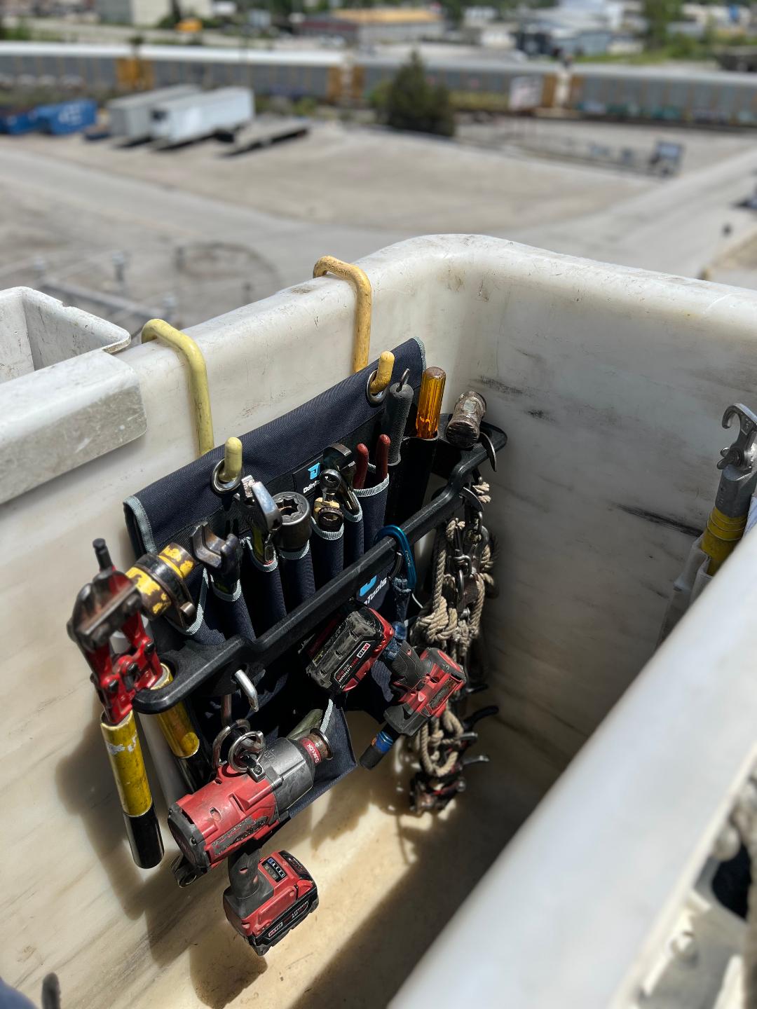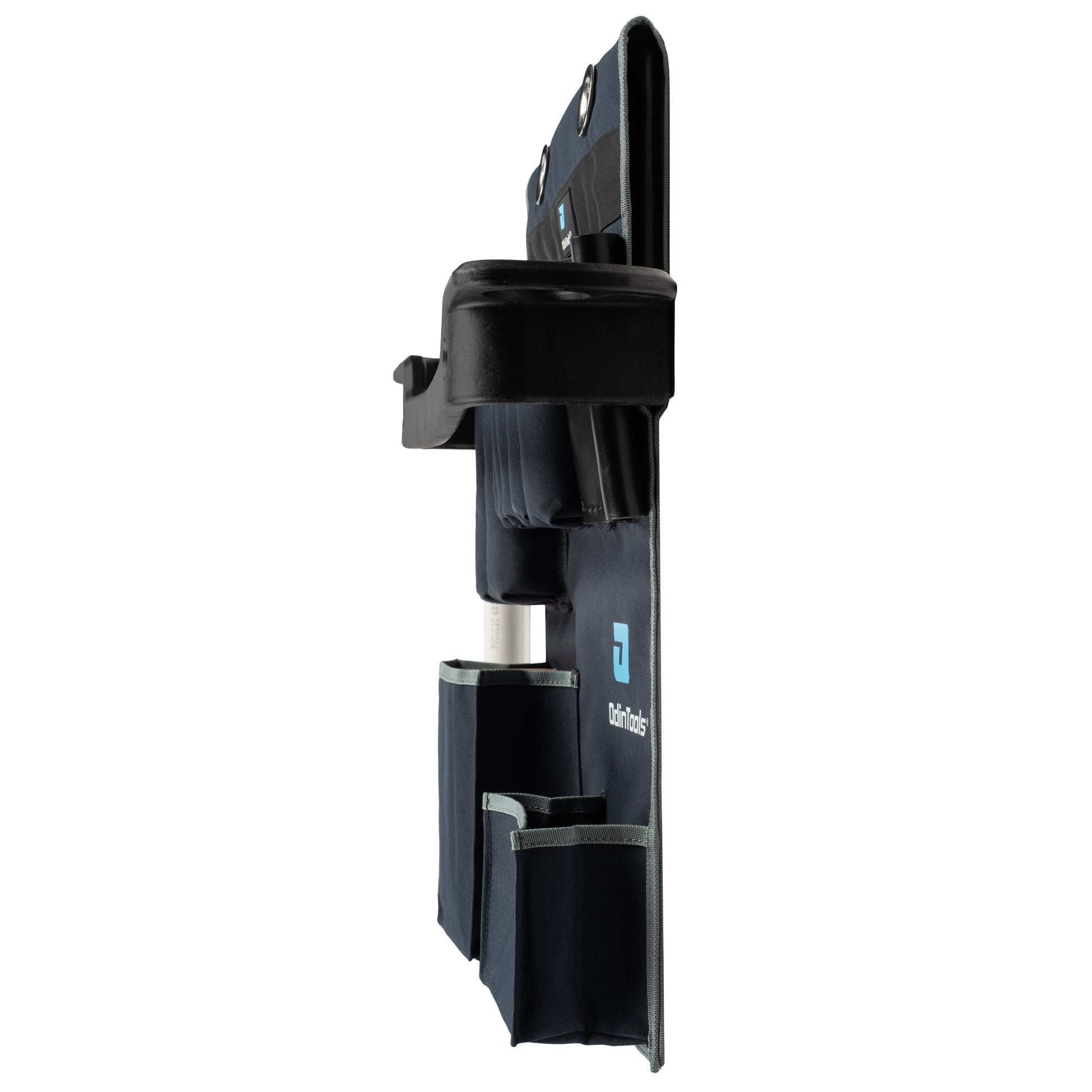 Double layered 1050D Nylon Ballistic Weave fabric. Solid skeleton for hanging tools made from the toughest material I could find. This tool apron is as tough as skinning Hendrix Wire in the winter. Journeyman of the air. As reliable as it is handy. It has 9 pockets, a skinning knife and screwdriver holster, dedicated spot to store your auger bit, easy access hammer and hot cutter storage, and a spot to hang extras like the die tree that your AP usually forgets on the ground. Finally, toss in the no latch bar in the front to hang power tools like a drill, press, or power cutters, and even your apprentice can figure out where to get your next tool apron.