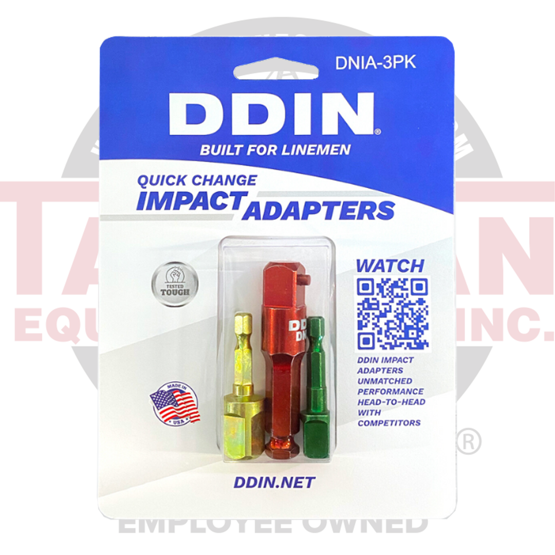 DDIN Impact Adapters are purpose-built to handle all the abuse linemen can throw at them. The unique demands of the utility industry push tools and gear to the limit, but through rigorous formulation and testing, DDIN has engineered impact adapters that will outlast the competition and hold up through the toughest of jobs.