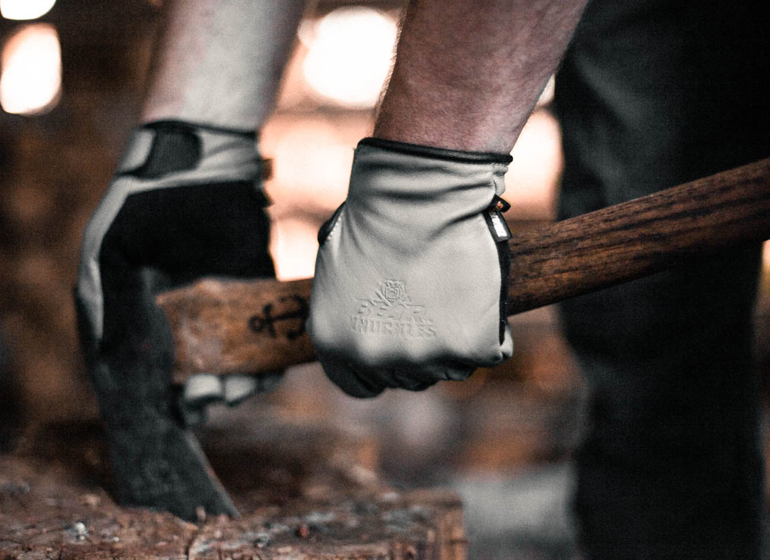 Mechanic Style Grey Leather Goat Hide Work Gloves - M283