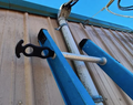 Once the tool is fully inserted you can clip the carabiner back into the closest handle hole to the ladders edge which will prevent the tool from inadvertently slipping out during use.