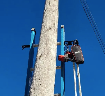 The Rung-Rack gives you a new safer option for hanging all of our battery tools, voltmeters, wire sagging gear and materials. We all know how cumbersome it can be just to make up a residential weather head off a ladder. By utilizing the Rung-Rack you will free up your hands and will no longer have to try to balance tools on roof tops or ladder steps.