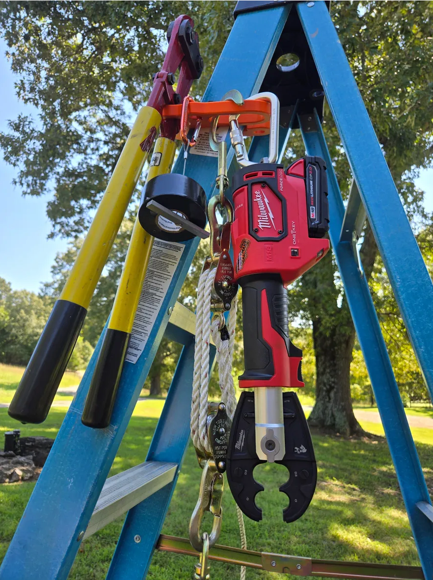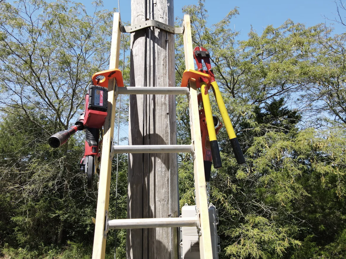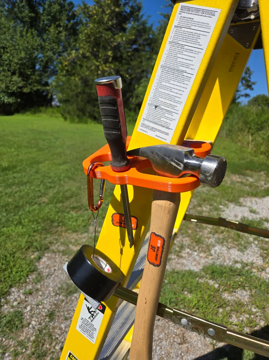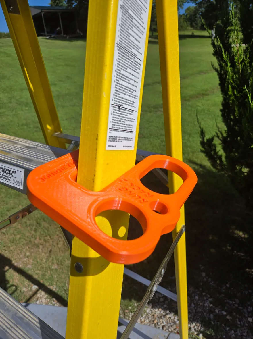 Much like our first Rung- Rack, this one also attaches to a ladder which provides us with new and safer options for hanging all of the tools or equipment we need to do our jobs. We all know how challenging it can be to hang on to our tools up there while trying to get a job done. This tool will absolutely make our jobs safer when working off a ladder, at the same time protecting our expensive equipment along with crewmates working below. The Rung-Rack 2 will securely click into place over the side frame rails of any ladder style, Both A-Frame and Extension ladders. We tested this on every brand ladder we could find with perfect results and you can use more than 1 of these at a time. This tool is manufactured out of very durable, extremely lightweight, non conductive nylon material. Each one is made right here In Northern Arkansas and has a labeled weight rating of 40lbs. Just like all of our other products, this also comes with a lifetime warranty.
