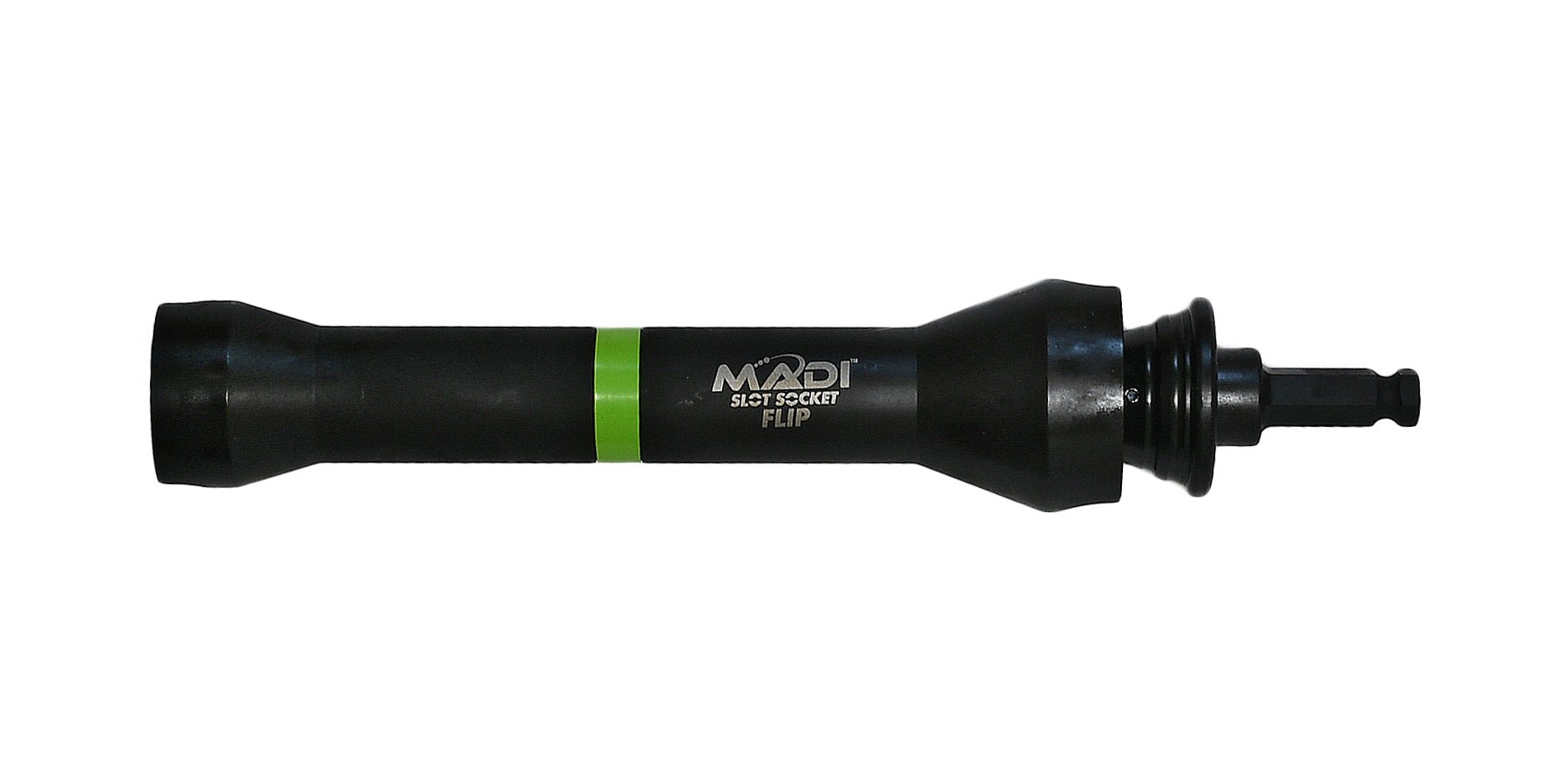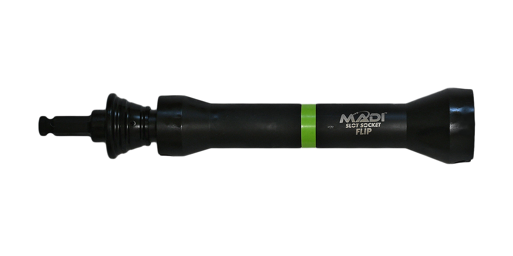 The Slot Socket™ Flip is impact-rated and features three square openings in one socket: ¾” (oversize) fits ½” hardware, 1” fits 5/8” hardware, and 1-1/8” fits ¾” hardware. It's designed for ease of use with rubber gloves and includes a Secure Lock Quick-Change Adapter to prevent unwanted socket disconnects. The adapter is also available separately under the SS-3AD. This tool is ideal for various applications, including grounding clamps, hot line clamps, T-clamps, underground feed-through bushings, layout arm hardware, stringing blocks, temporary arm insulators, 5/8” and ¾” eye nuts, large hardheads or lags, large J hooks, and non-standard eye nuts on composite arms. It also facilitates the removal and installation of pole steps. Praised by industry experts and professionals, the Slot Socket™ Flip's versatile and convenient design accommodates multiple hardware sizes, ensuring a secure and stable connection for every application. Say goodbye to the hassle of traditional wrenches and embrace the efficiency of the Slot Socket™ Flip.