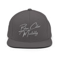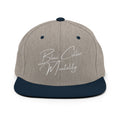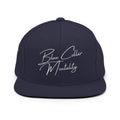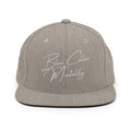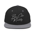 This hat is structured with a classic fit, flat brim, and full buckram. The adjustable snap closure makes it a comfortable, one-size-fits-most hat.