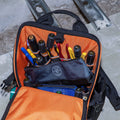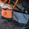 Easily access and organize tools and small parts with the Klein Tools Stand-up Zipper Bags. These gusseted bags have 2520d reinforced bottoms that help reduce sharper tools and parts from wearing through and stand up for easy access. Set includes 5 bags: 14-Inch long (35.56 cm) dark gray bag, 7-Inch long (17.78 cm) royal blue bag, 9-Inch long (22.86 cm) light gray bag, 8.5-Inch long (21.59 cm) orange bag and a 10-Inch long (25.4 cm) yellow bag. Each includes a carabiner to easily attach to tool bags and belts (not for human support).