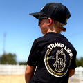 For the kids who already shine a little brighter. This black tee rocks a bold gold skeleton-hand graphic and “Stay Golden” message on the back, giving them a little attitude with their shine. Tough enough for the playground, soft enough for every day. Built for kids who never slow down.