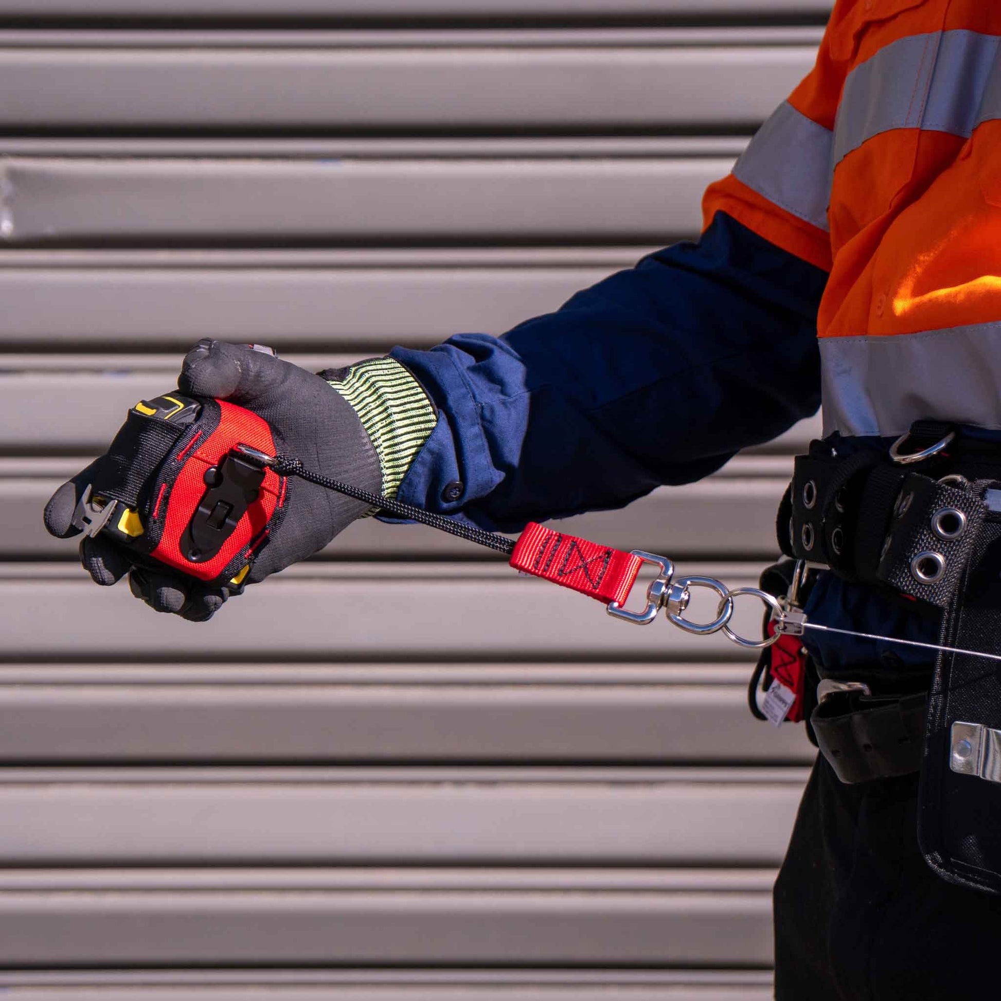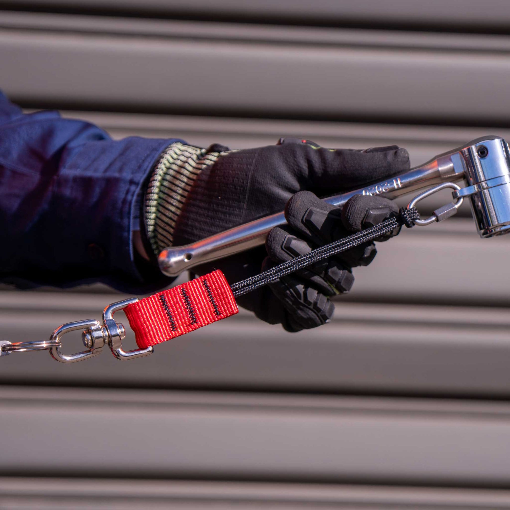 Secure your tool by attached a GRIPPS® tool tether or coil to the metal ring of the GRIPPS® Swivel Catch, then anchor it to your glove, belt, or another suitable connection point.