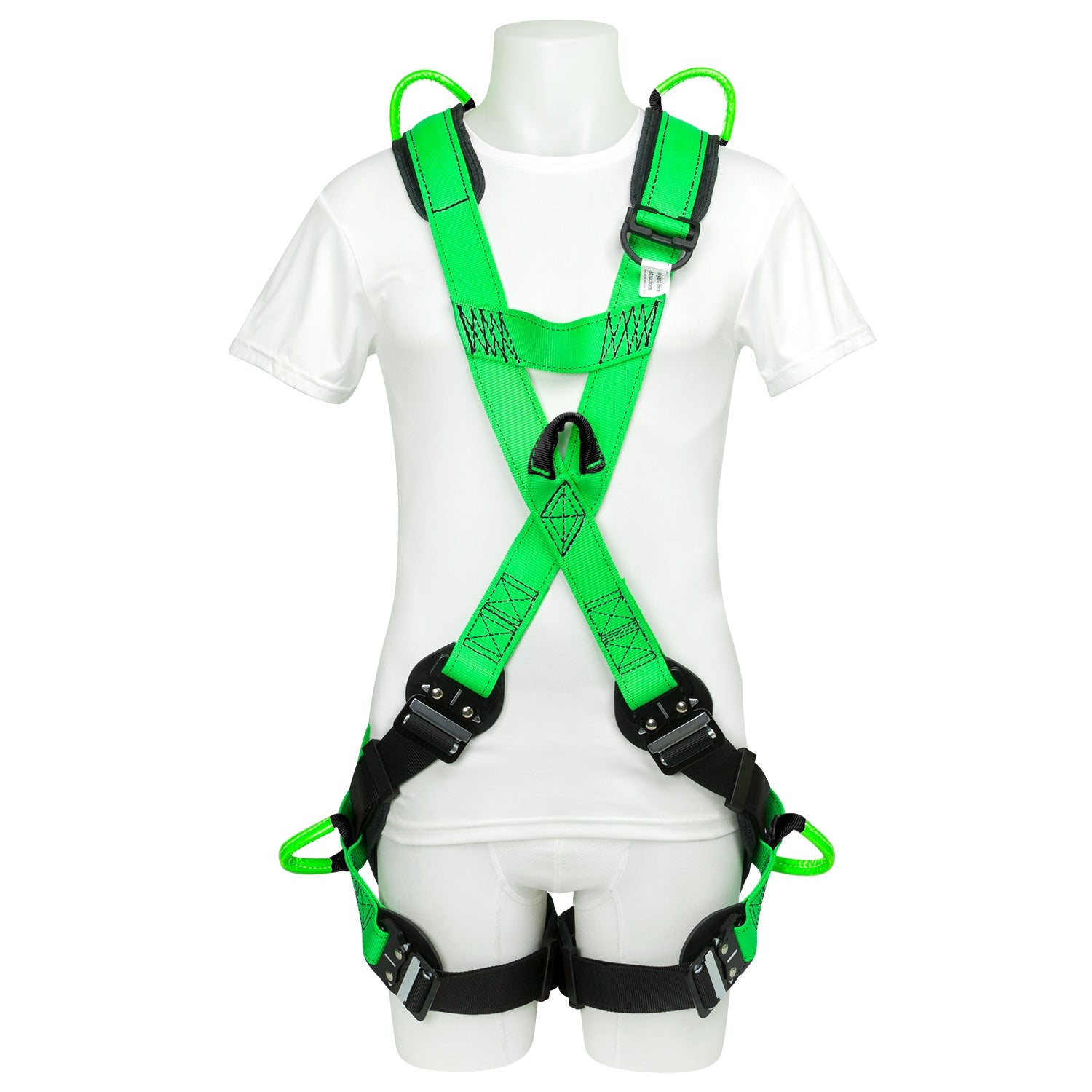 - The harness comes with an energy-absorbing lanyard breakaway attachment (ensure ANSI compliance if removing the back pad) & leg strap retainers to use if needed.