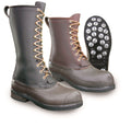 A decision was made by Hoffman's on quality vs. cost of the new rubber bottoms used in the construction of our thinsulate lined Pro-Series winter pacs. After working with many companies and looking at numerous samples, we decided that quality would be our number 1 criteria. Our Pro-Series hand-made waterproof rubber bottoms are constructed with a layer of polyester and polyamid to help slow chain saw penetration and cracking,. They are the toughest, most durable bottoms we have and far exceed any other bottom on the market today. Our contour leather uppers are made with premium 7 oz. tanned leather cut to fit the curvature of your leg. A removable 200 gram thinsulate/wool liner provides warmth. Heel counters, toe caps and replaceable calks are all standard features.