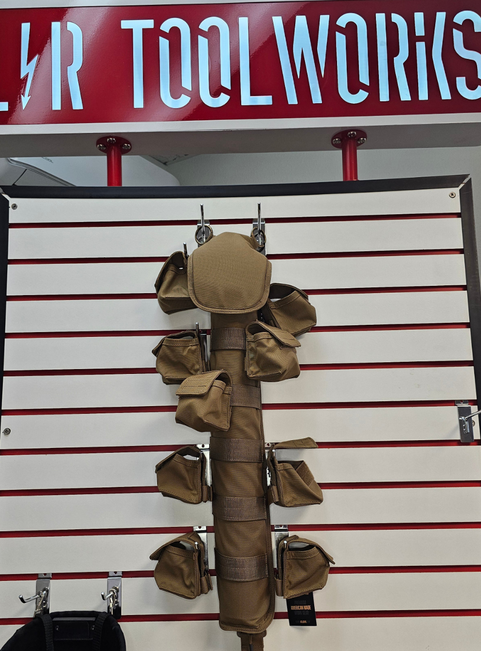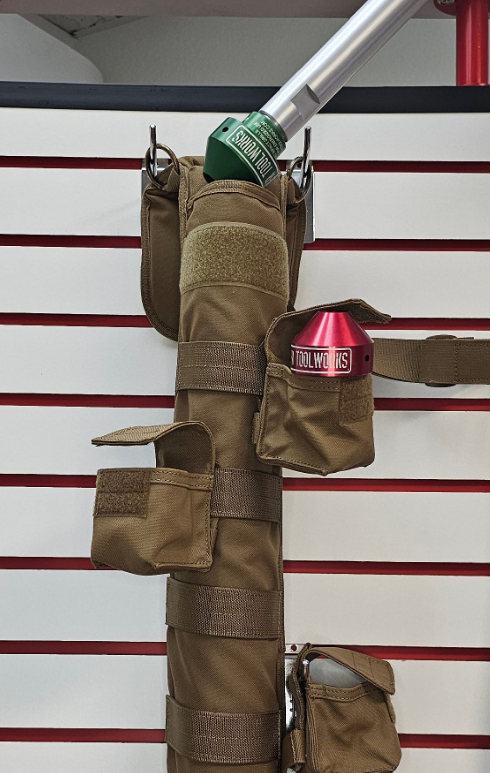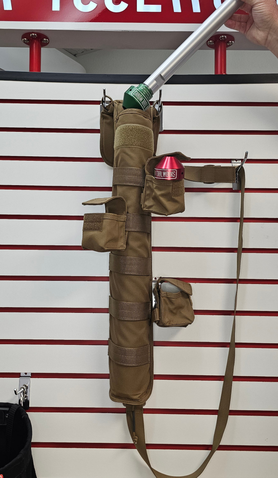 American made 28" tool bag and sling for the bucket or bin. This bag will hold your 24" tubes. Includes handy sling for carrying and 2 metal ring to hang on bucket hooks inside or outside the bucket. This rugged bag will handle any day to day abuse. Additionally it will hold a small bucket extend-O stick. Side pouches are easy to open, they can hold extra heads, tape, staples, ZYN or cigs. Whatever you need. Pouches sold separately.