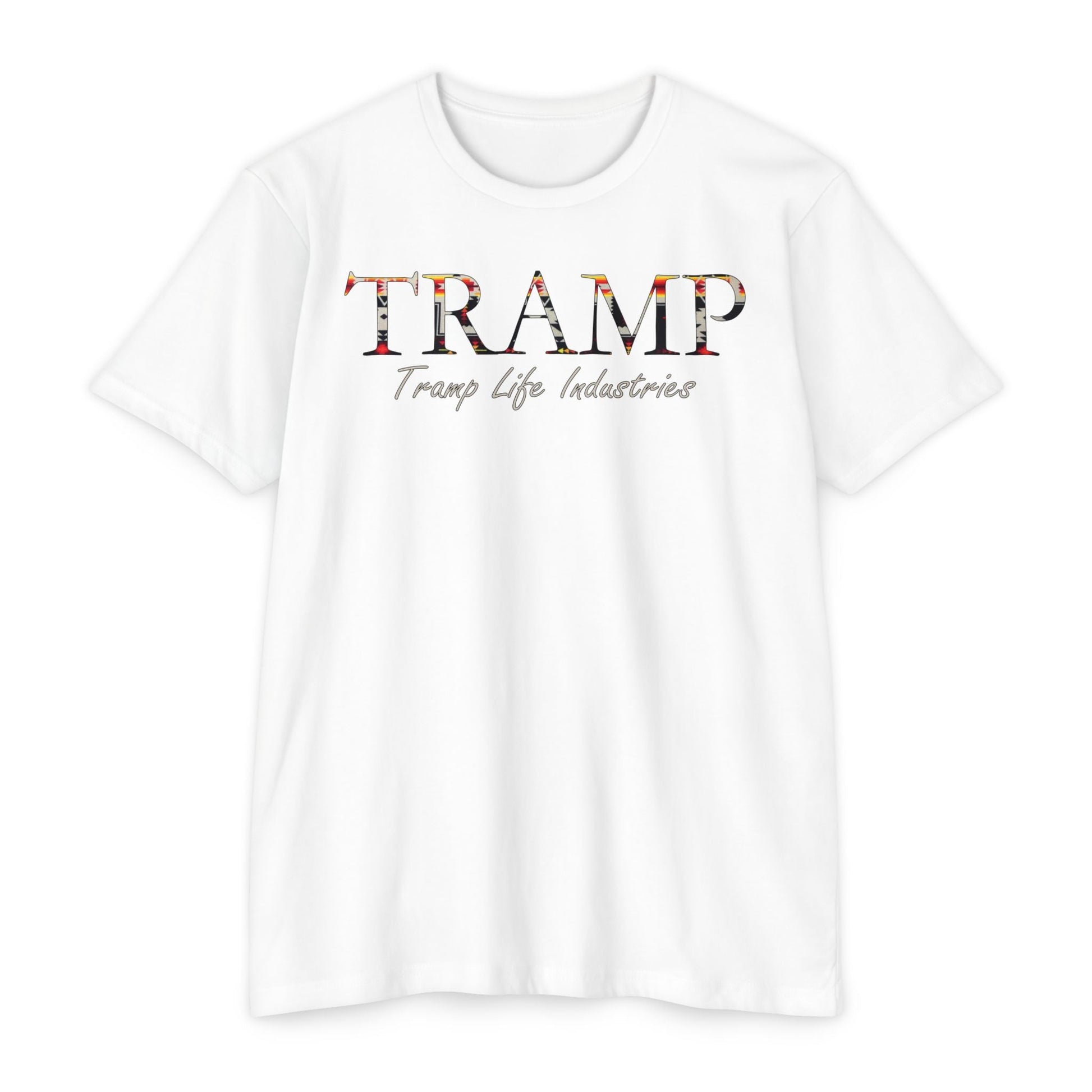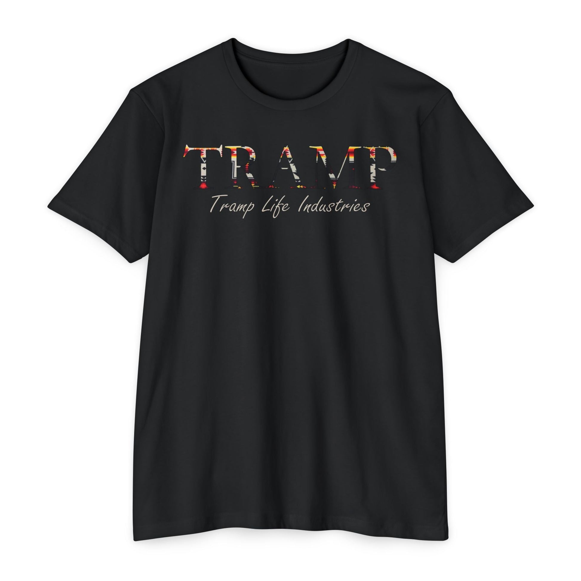 This tee reps the lifestyle from coast to coast. The bold “TRAMP” lettering is filled with a custom southwestern-style pattern, layered above “Tramp Life Industries” in clean script. Whether you're on the job, in the truck, or off the clock, this shirt speaks for you without saying a word.