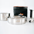 Two type of stainless Kovea takes this a step further with this kit, by utilizing 18/10 stainless for the inner layer, and 430 Series for the outer layer you get improved stick resistance and durability on the inside, and a corrosive resistant exterior.