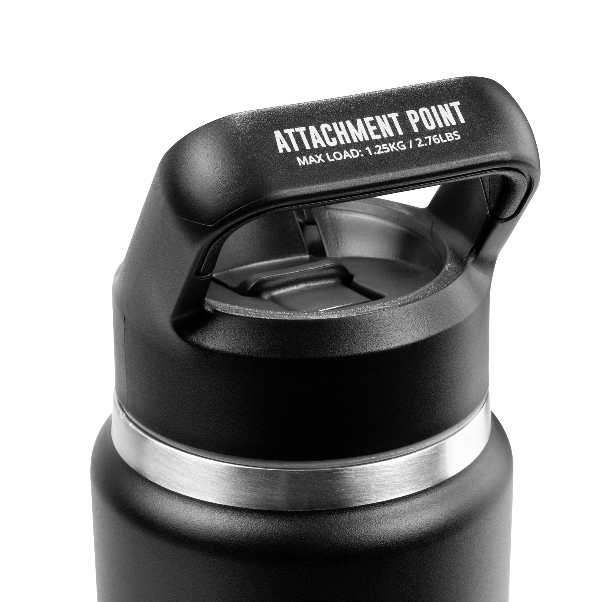 A secure connection point on the top of the lid, this bottle can easily be connected to a tool tether or tool anchor.