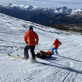 Equipped with removable skids and handles to facilitate sliding on snowy slopes.