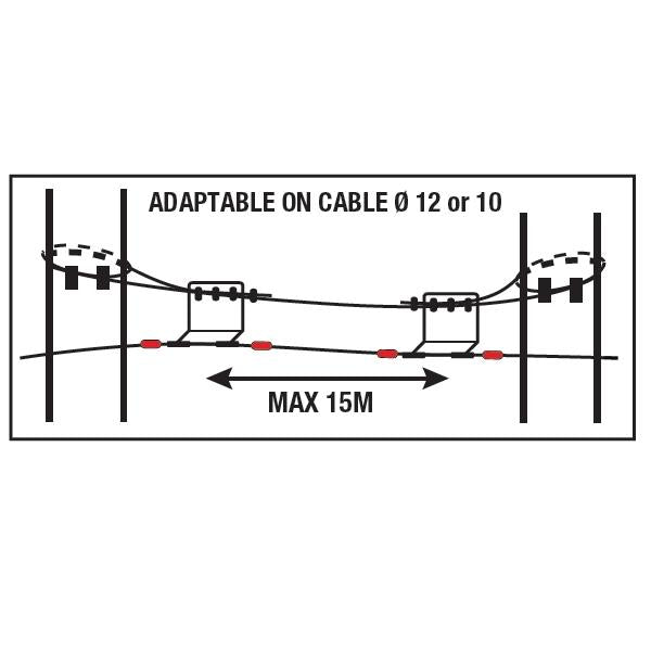 The principle of operation is very simple: the hook's opening is smaller than the diameter of the cable, but greater than the thickness of the plates. In this way, safety is guaranteed. Once you enter the lifeline, it is impossible to accidentally disconnect before the end of the course. Only by a special key supplied to the manager of the park, it is possible to unlock the sleeve and then make ultra-rapid evacuations in case of illness, storm, fire, etc... Thanks to the various components, it is possible to secure all steps and the various games of your park, such as rope jumps, with the new ZAZA 2 Connect. Coudou Pro system will allow you to save on surveillance staff costs and ensure better security for your customers.
