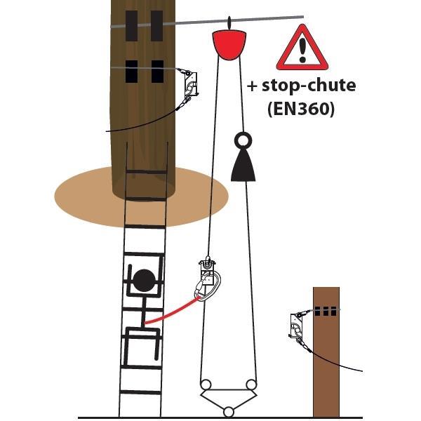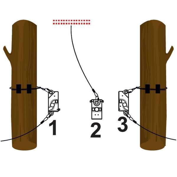 The principle of operation is very simple: the hook's opening is smaller than the diameter of the cable, but greater than the thickness of the plates. In this way, safety is guaranteed. Once you enter the lifeline, it is impossible to accidentally disconnect before the end of the course. Only by a special key supplied to the manager of the park, it is possible to unlock the sleeve and then make ultra-rapid evacuations in case of illness, storm, fire, etc...