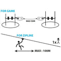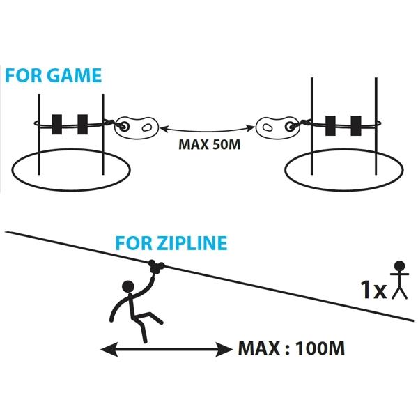 The principle of operation is very simple: the hook's opening is smaller than the diameter of the cable, but greater than the thickness of the plates. In this way, safety is guaranteed. Once you enter the lifeline, it is impossible to accidentally disconnect before the end of the course. Only by a special key supplied to the manager of the park, it is possible to unlock the sleeve and then make ultra-rapid evacuations in case of illness, storm, fire, etc... Thanks to the various components, it is possible to secure all steps and the various games of your park, such as rope jumps, with the new ZAZA 2 Connect. Coudou Pro system will allow you to save on surveillance staff costs and ensure better security for your customers.
