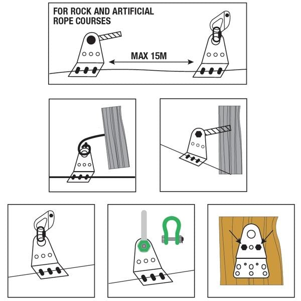 The principle of operation is very simple: the hook's opening is smaller than the diameter of the cable, but greater than the thickness of the plates. In this way, safety is guaranteed. Once you enter the lifeline, it is impossible to accidentally disconnect before the end of the course. Only by a special key supplied to the manager of the park, it is possible to unlock the sleeve and then make ultra-rapid evacuations in case of illness, storm, fire, etc...