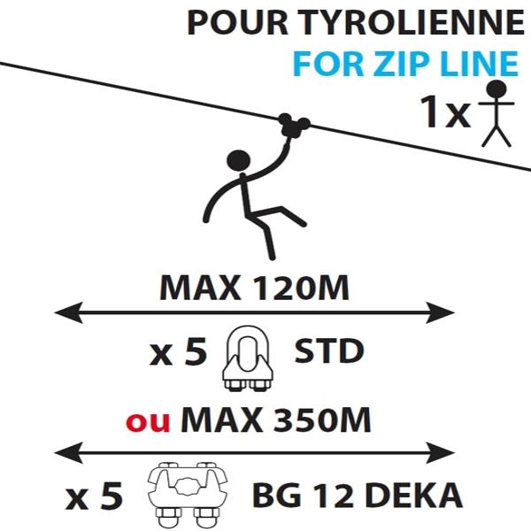 The principle of operation is very simple: the hook's opening is smaller than the diameter of the cable, but greater than the thickness of the plates. In this way, safety is guaranteed. Once you enter the lifeline, it is impossible to accidentally disconnect before the end of the course. Only by a special key supplied to the manager of the park, it is possible to unlock the sleeve and then make ultra-rapid evacuations in case of illness, storm, fire, etc...
